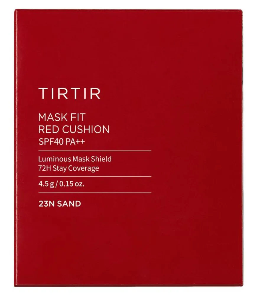 TIRTIR Mask Fit Red Cushion er en populær foundation, kjent for sin imponerende 72-timers dekkevne. Den gir en lett, oppbyggbar semi-matt finish som er perfekt for en strålende, glatt hud. Beriket med hibiskus- og rød propolis-ekstrakter, forbedrer den hudens elastisitet og gir en ungdommelig glød.