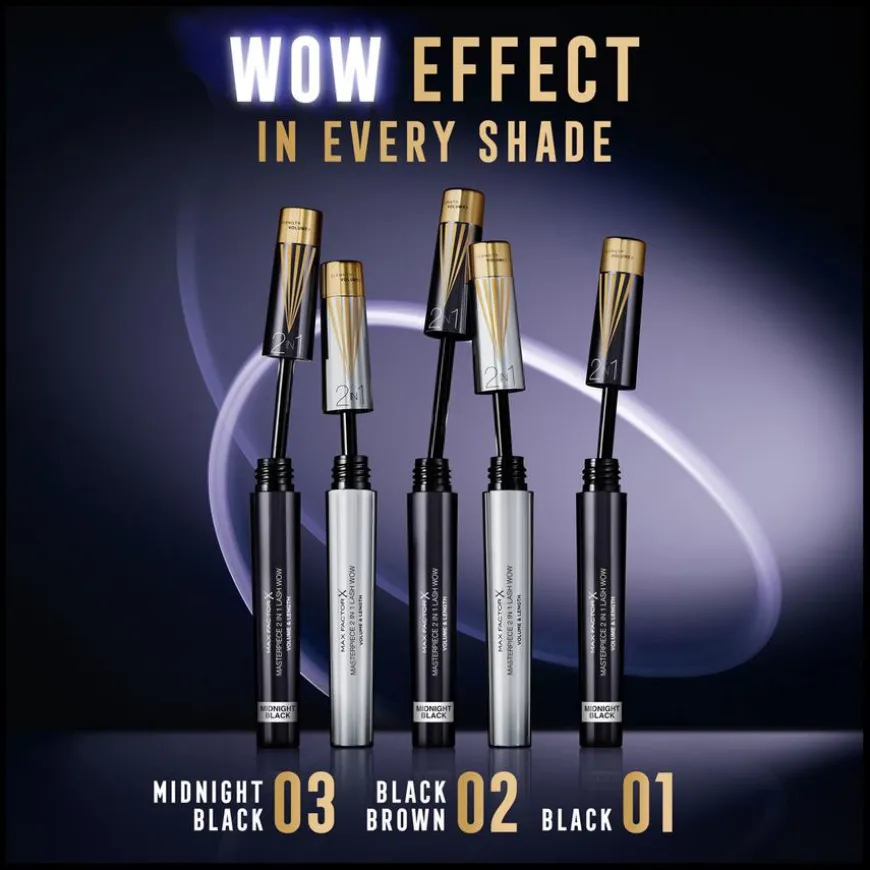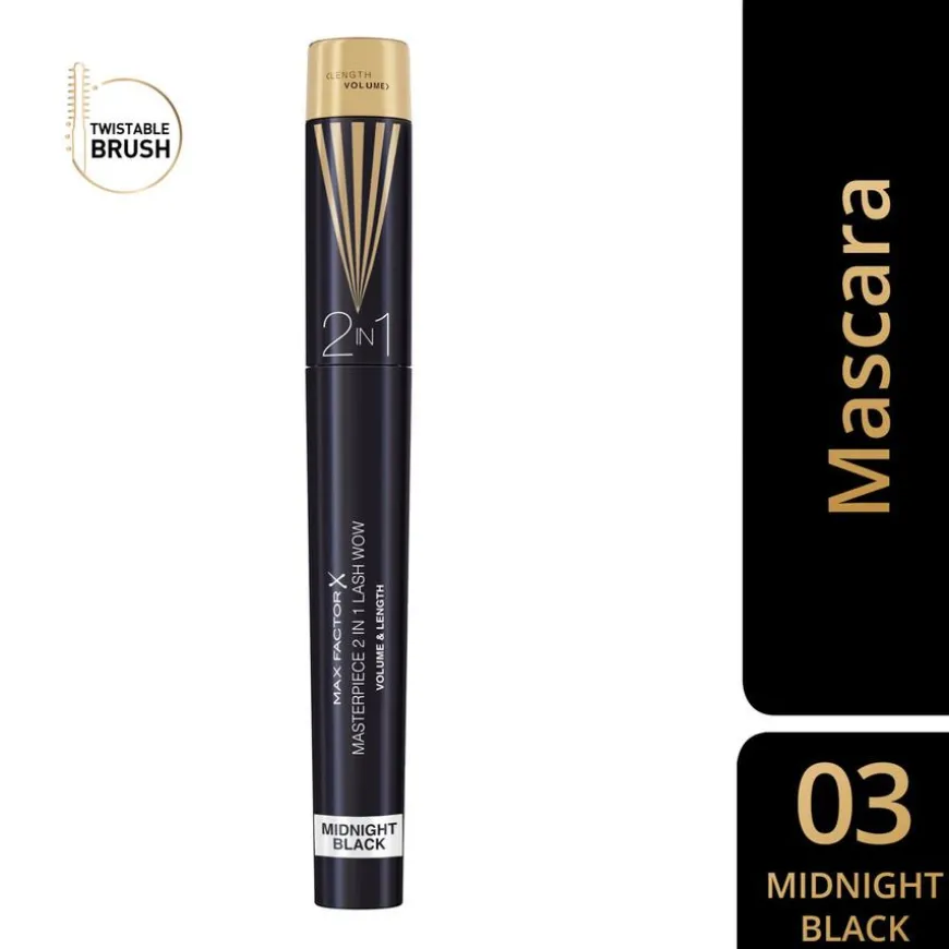 Max Factor Masterpiece 2-in-1 Lash Wow Mascara er en mascara for vipper som ser lengre ut med maksimalt volum. Den unike, vridbare mascarabørsten er lett å bruke og lar deg velge din foretrukne look for maksimale resultater.