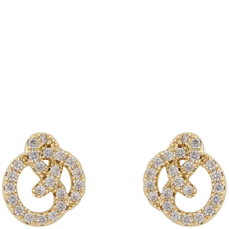 Mayfair Knot Earring i gull er elegante stud-øredobber med et knutedesign som symboliserer evighet og sammenheng. Disse 11mm øredobbene er dekorert med skinnende cubic zirconia-stener som tilfører en luksuriøs glans. De er ideelle for både hverdagsbruk og formelle anledninger, og gir et elegant preg til enhver look. Perfekte for deg som ønsker et stilfullt smykke med en tidløs appell.