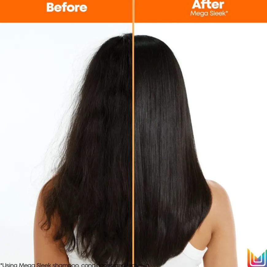 - Matrix Mega Sleek Shampoo er en shampoo med mykgjørende shea butter hjelper med å kontrollere krus med en fuktighetsbeskyttelse hele dagen*. Denne shampooen renser og fukter, og etterlater håret mykere, skinnende og mindre krusete. *Når du bruker den fullstendige Mega Sleek serien.