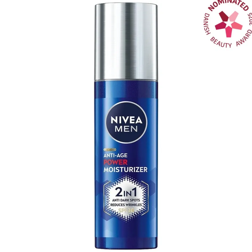 Anti-Age Power Moisturizer 2in1 Anti Dark Spots SPF 30 er en fuktighetskrem utviklet for menn som ønsker en effektiv og enkel hudpleierutine. Den patenterte LUMINOUS630-teknologien og hyaluronsyre jobber sammen for å redusere rynker og mørke flekker, samtidig som huden tilføres intens fuktighet. Den lette og ikke-klebende formelen absorberes raskt og etterlater huden frisk og revitalisert. Med SPF 30 gir den også beskyttelse mot solens UV-stråler, og bidrar til å forebygge aldringstegn. Passer for daglig bruk og alle hudtyper, og gir synlig sunnere hud på bare 4 uker