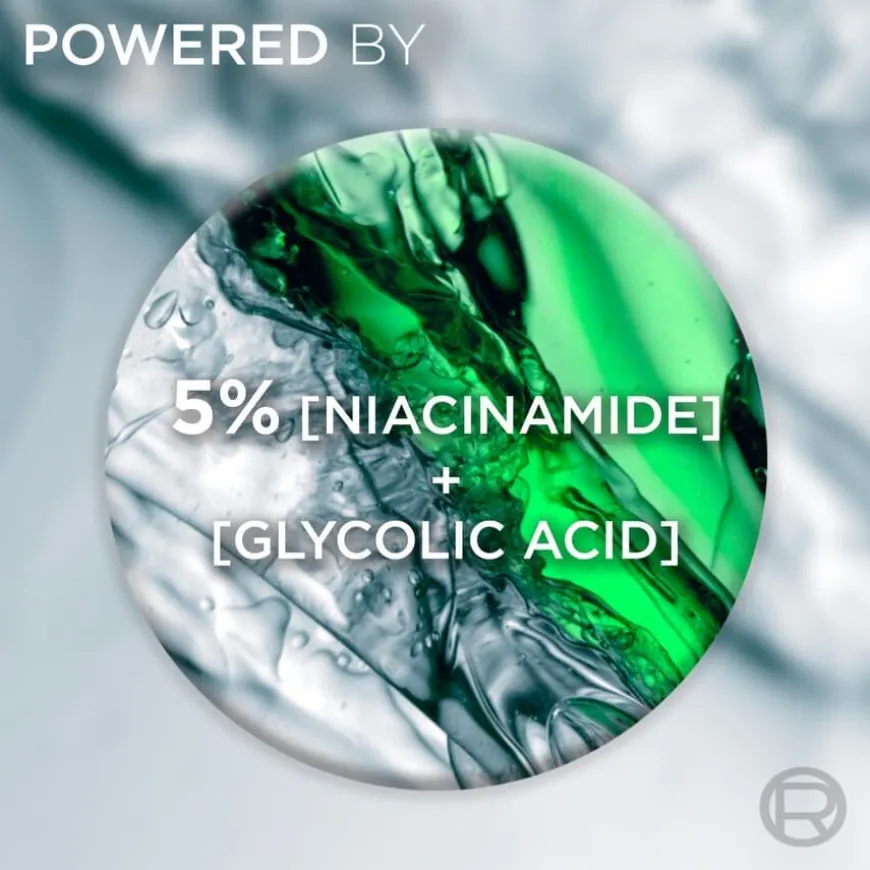 - Beriket med niacinamid og glykolsyre.