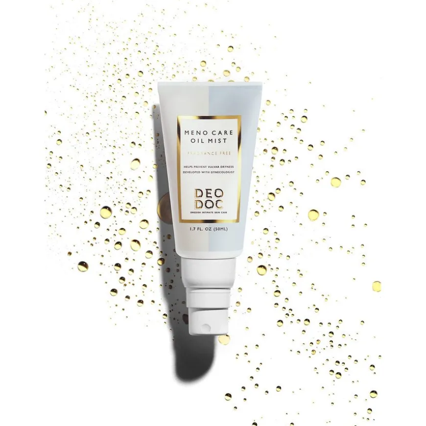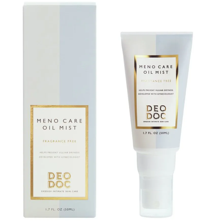 Menocare Oil Mist Fragrance Free fra DeoDoc er en pleiende oljespray spesielt utviklet for å mykgjøre og fukte tørre og skjøre slimhinner som kan oppstå i overgangsalderen og perimenopause. Sprayen inneholder fuktighetsgivende sheasmør og beroligende mandelolje, som legger seg som en lett beskyttende hinne på huden for å styrke hudbarrieren og redusere risikoen for sprekker. Et halvt pumpetrykk gir en finfordelt mist som raskt absorberes av huden uten å etterlate en klissete følelse. Produktet er parfymefritt, noe som gjør det ideelt for sensitiv hud og daglig bruk.