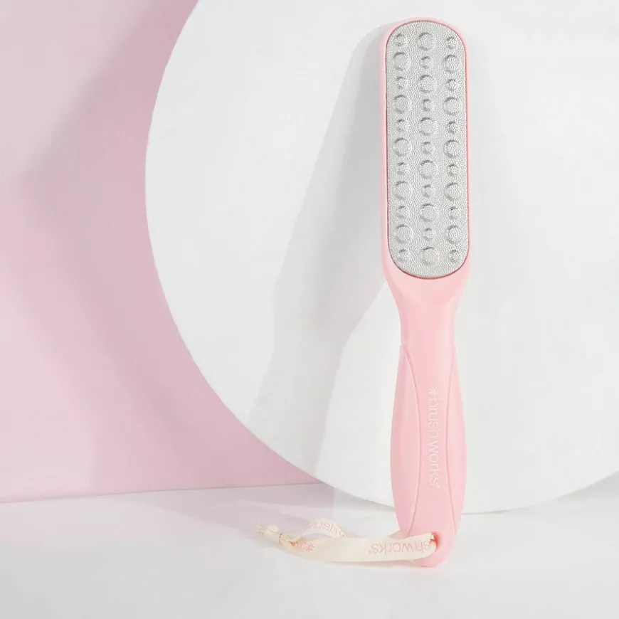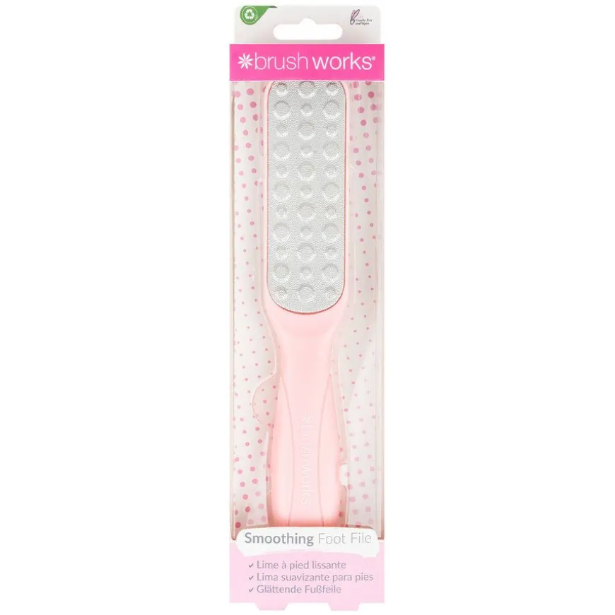 Få glatte føtter uten problemer med Brushworks Metal Foot File! Med denne fotfilen kan du oppnå myke og sandalklare føtter på et blunk. Filen er lett å holde rundt og har en dobbeltsidig fotfil med ulike kornstørrelser og grovhet. Den trygge og effektive filen fjerner hard og grov hud. Den er laget av rustfritt stål av høy kvalitet som er lett å desinfisere, slik at den kan være en del av fotpleiebehandlingen din i lang tid.