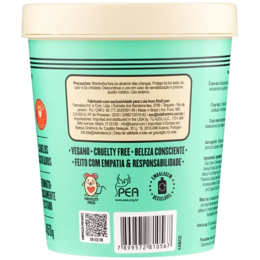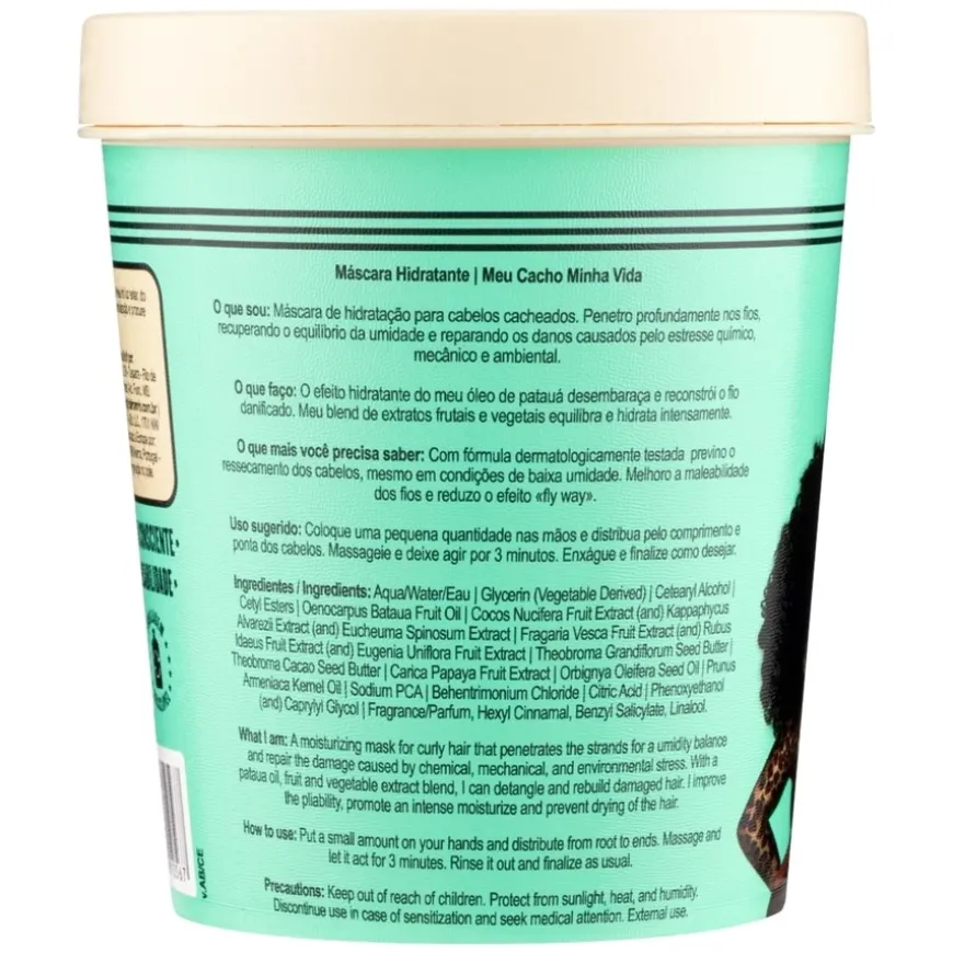 MEU CACHO MINHA VIDA Moisturizing Mask er en fuktighetsgivende hårkur spesielt utviklet for krøllete hår som trenger ekstra pleie. Den trenger dypt inn i hårstråene, gjenoppretter fuktbalansen og styrker håret fra innsiden. Masken hjelper til med å reparere skader etter kjemiske, mekaniske og miljømessige belastninger, samtidig som den gjør håret mykere, mer definert og lettere å håndtere. Perfekt for krøller som trenger hydrering og beskyttelse. Advarsel: Oppbevares utilgjengelig for barn. Ikke bruk hvis hodebunnen er irritert eller sensitiv (flass, sår, skrubbsår osv.). Avslutt bruk ved reaksjon. Kontakt lege om problemet vedvarer. Ikke bruk hvis du er allergisk mot noen av ingrediensene. Oppbevares kjølig, godt ventilert og beskyttet mot direkte sollys.
