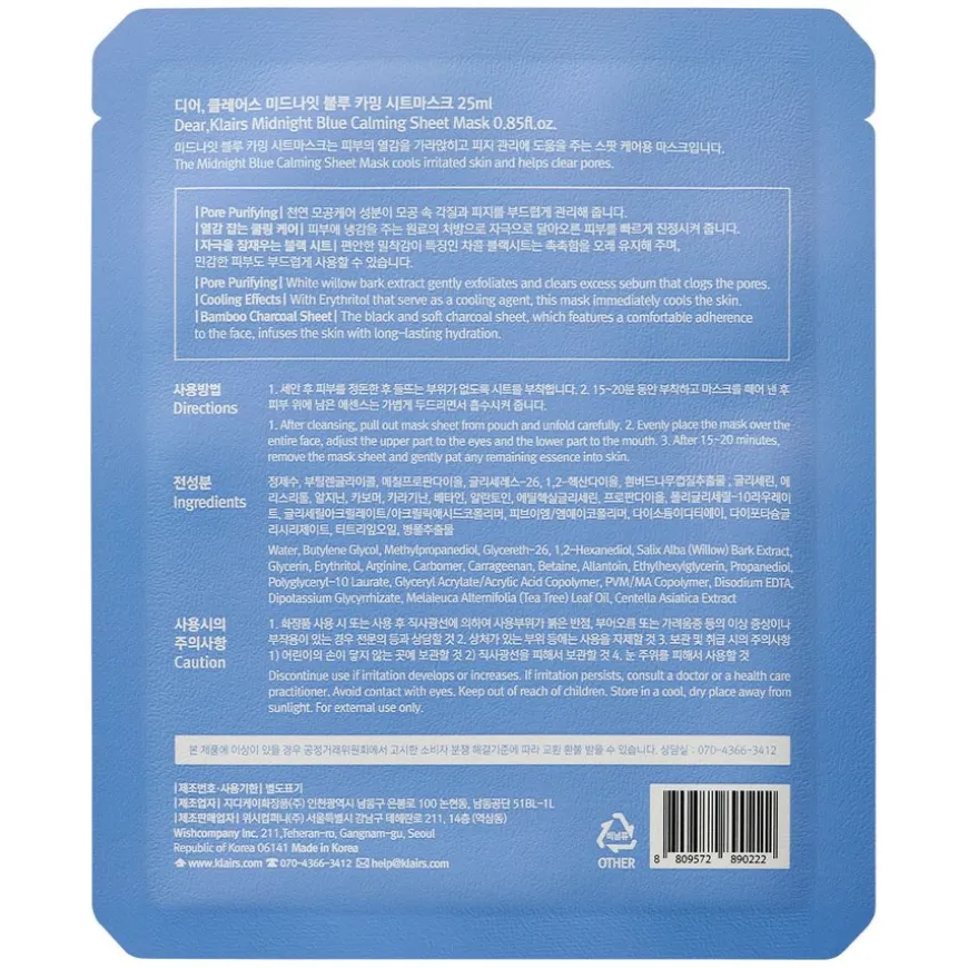 En sheet mask av bambus og kull beriket med en essens som inneholder blant annet piltreekstrakt (en naturlig kilde til BHA), Centella asiatica og erytritol som sammen minsker og forebygger store porer og har en beroligende, avkjølende effekt på huden.