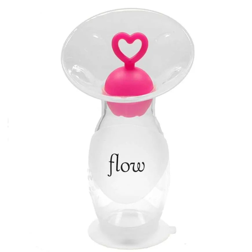 Flow melkeoppsamler er en flaske av myk silikon som med naturlig vakuum festes på det andre brystet mens du ammer. På den måten samles melken på en enkel måte uten strøm, ledninger eller slanger.
