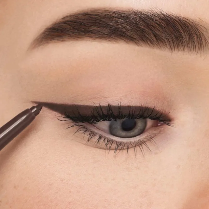 - Påfør på våtlinjer eller langs vippekanten, arbeid deg fra innsiden av øyet og utover.