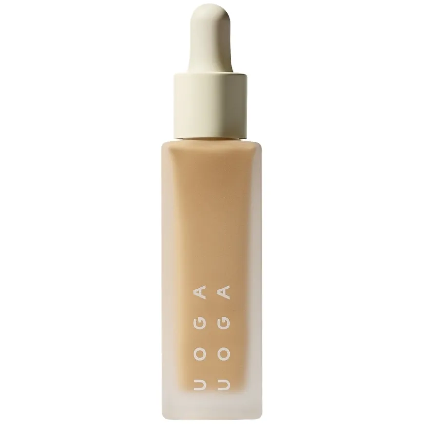 Mineral Serum Foundation SPF20 fra Uoga Uoga er en lett og silkemyk serumfoundation som kombinerer makeup og hudpleie i ett. Den gir middels dekning som jevner ut hudtonen og skjuler små ujevnheter, samtidig som huden får en naturlig glød og føles fuktet hele dagen. Formelen er beriket med hyaluronsyre, som trekker til seg og binder fuktighet i huden, og vitamin C, kjent for sine lysnende og oppfriskende egenskaper. Sammen bidrar disse ingrediensene til en jevnere hudtone og sunn glød.
