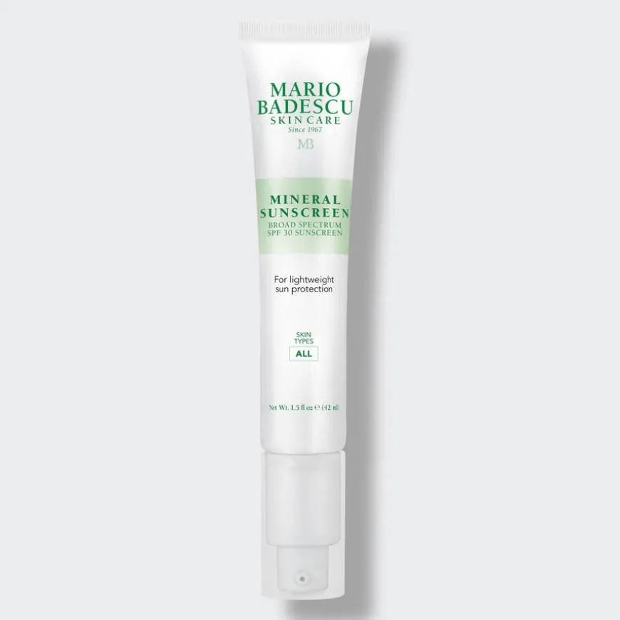 Mario Badescu Mineral Sunscreen SPF 30 er en lett, silkemyk og oljefri mineralsolkrem for ansiktet, som gir bredspektret UVA/UVB SPF30 solbeskyttelse. Denne hurtigabsorberende ikke-komedogene formelen tilfører huden fuktighet, og gir den et mykt og glatt resultat, som er ideellt for påføring av sminke. Inneholder en blanding av ekstrakter fra kraftfulle antioksidanter som blåbær, tranebær og gojibær, lindrende og glattende indisk stikkelsbær, og hyaluronsyre som hydrerer og gjør huden fyldig.