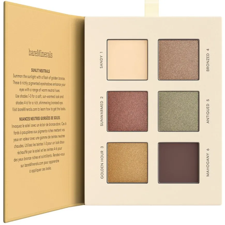Antiqued, Bronzed & Sunwarmed: MICA, OCTYLDODECYL STEAROYL STEARATE, ROSA MOSCHATA SEED OIL, ZINC STEARATE, CAPRYLYL GLYCOL, HIPPOPHAE RHAMNOIDES OIL, MAGNESIUM STEARATE, CELLULOSE, SODIUM DEHYDROACETATE, PHENOXYETHANOL. MAY CONTAIN/PEUT CONTENIR (+/-): TITANIUM DIOXIDE (CI 77891), IRON OXIDES (CI 77491, CI 77492, CI 77499), ULTRAMARINES (CI 77007). Mahogany & Sandy: MICA, CELLULOSE, ROSA MOSCHATA SEED OIL, OCTYLDODECYL STEAROYL STEARATE, CAPRYLYL GLYCOL, ZINC STEARATE, HIPPOPHAE RHAMNOIDES OIL, MAGNESIUM STEARATE, CAPRYLIC/CAPRIC TRIGLYCERIDE, ALUMINUM HYDROXIDE, SODIUM DEHYDROACETATE, PHENOXYETHANOL. MAY CONTAIN/PEUT CONTENIR (+/-): TITANIUM DIOXIDE (CI 77891), IRON OXIDES (CI 77491, CI 77492, CI 77499), YELLOW 5 LAKE (CI 19140). Golden Hour: MICA, OCTYLDODECYL STEAROYL STEARATE, CAPRYLIC/CAPRIC TRIGLYCERIDE, ZINC STEARATE, ROSA MOSCHATA SEED OIL, SILICA, CAPRYLYL GLYCOL, HIPPOPHAE RHAMNOIDES OIL, MAGNESIUM STEARATE, CELLULOSE, SODIUM DEHYDROACETATE, PHENOXYETHANOL. MAY CONTAIN/PEUT CONTENIR (+/-): TITANIUM DIOXIDE (CI 77891), IRON OXIDES (CI 77491, CI 77492, CI 77499), BISMUTH OXYCHLORIDE (CI 77163).
