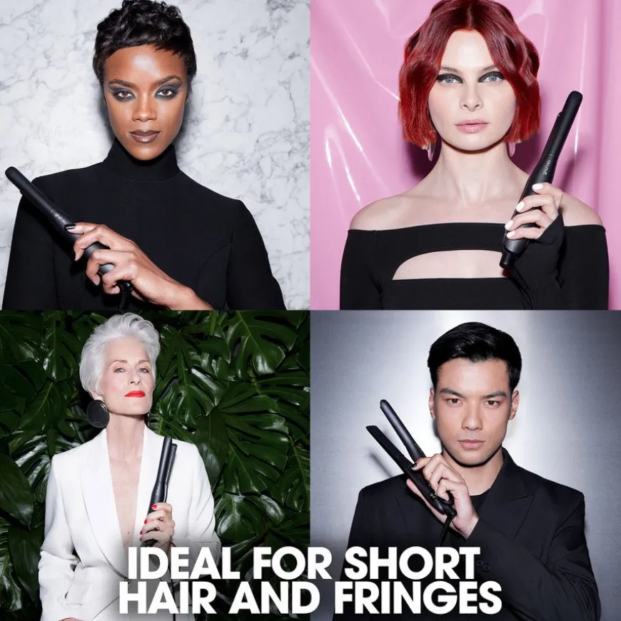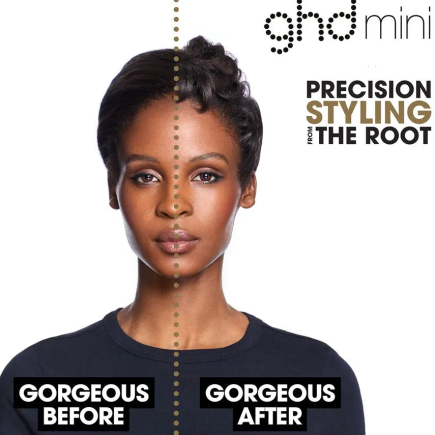 Stylingen er nettopp skreddersydd for kort hår; form Pixie-cuts, lugg og Page med presisjon takket være ghd mini styler, designet med 40 % tynnere* plater.