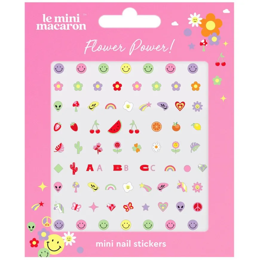 Få frem grooven din med Flower Power Mini Nail Stickers. Denne pakken med fargerike negleklistremerker inkluderer blomster, enhjørninger, sommerfugler, smileys mm.
