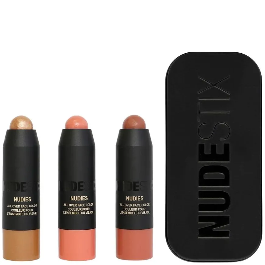 Mini Nudies Kit er et tre-i-ett sett med multifunksjonelle stifter til kinn, lepper og øyne. Settet inneholder tre miniversjoner av Nudestix’ bestselgende Nudies i fargene Hey, Honey (gyllen bronse), Sunkissed (korallbronse) og Sweet Peach Peony (myk fersken). Disse kremede fargene smelter inn i huden og gir en naturlig, langvarig finish som passer alle hudtoner. Produktet er vegansk, cruelty-free og duftfritt. Perfekt for deg som ønsker enkel påføring, allsidighet og naturlig glød.