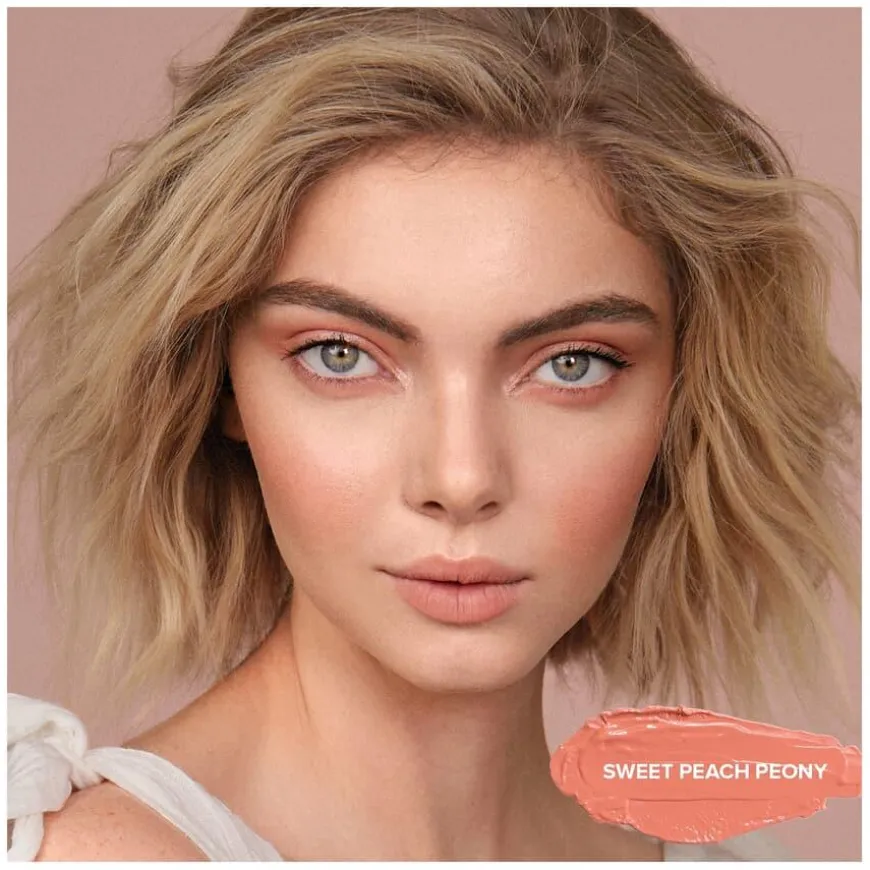 - Påfør Sweet Peach Peony på kinn og blend for en frisk, ferskenaktig glød.