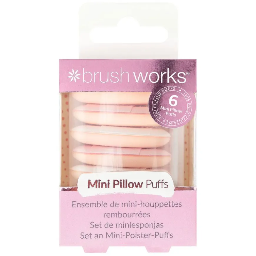 Rett opp sminken din uten problemer mens du er på farten med Brushworks Mini Pillow Puffs. Med seks små sprettende svamper, perfekt for å nå alle ansiktets konturer. Den ultramyke svampen fordeler enkelt makeup for en feilfri finish. Disse allsidige svampene kan sprayes fuktig for å blande foundation og concealer eller brukes tørre for å påføre løst eller presset pudder.