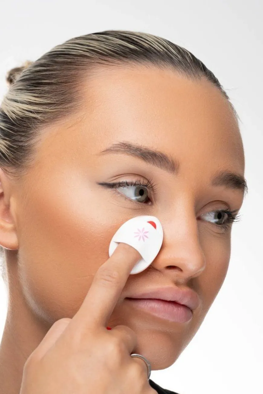- For bruk til pudder, dypp ganske enkelt svampen i ditt foretrukne pudderprodukt, trykk forsiktig og bland inn i huden.