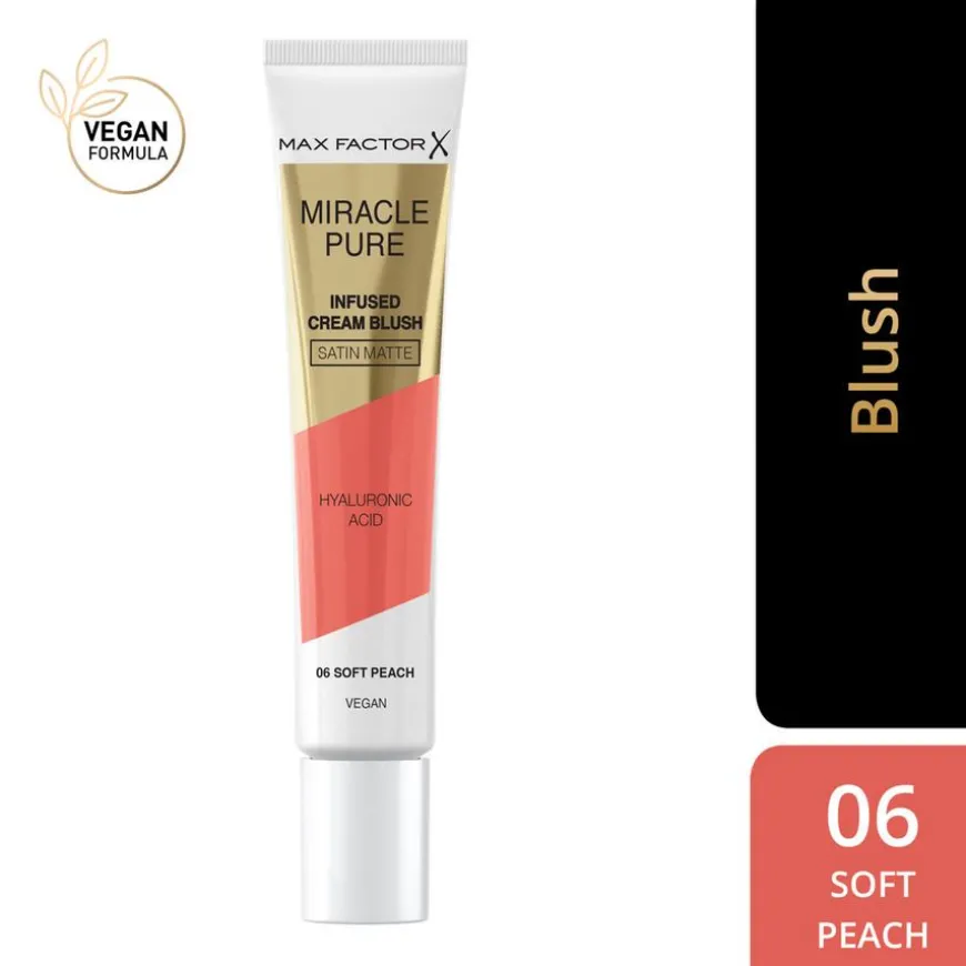 Miracle Pure Infused Cream Blush er en lett og blendbar blush. Formelen av denne Max Factor-kremrougen er høypigmentert og gir en rik farge og en langvarig, lysende look med en satin-matt finish. Den veganske formelen er beriket med et fuktighetsgivende kompleks av hyaluronsyre og squalane. Oppdag et utvalg i en rekke nyanser som gir enten en duggfrisk glød eller satin-matt finish som passer til alle hudtoner. Legg til dimensjon og kontur i ansiktet ditt ved å pare den med Miracle Pure Golden Glow Bronzer for en hudforbedrende opplevelse som vakkert rammer inn ansiktet ditt. Bygg din enkle og svært naturlige sminkelook med Miracle Pure-serien – inspirert av hudpleie, mestret av Max Factor.