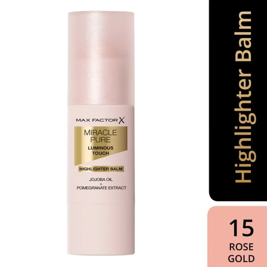 Miracle Pure Luminous Touch Highlighter Balm er en flerbrukshighlighter i balm-stift-format som gir umiddelbar glød og friskhet. Den kremete formelen er enkel å påføre og bygge opp, og smelter sømløst inn i huden for et naturlig, strålende resultat. Highlighteren er beriket med pleiende ingredienser som jojobaolje og granatepleekstrakt med antioksidant-effekt, som gir huden fukt og næring gjennom hele dagen. Den veganske formelen er dermatologisk testet og passer for alle hudtyper – også sensitiv hud. Bruk den alene, eller kombiner med Max Factor Miracle Pure Blush Balm for den perfekte glød og farge.