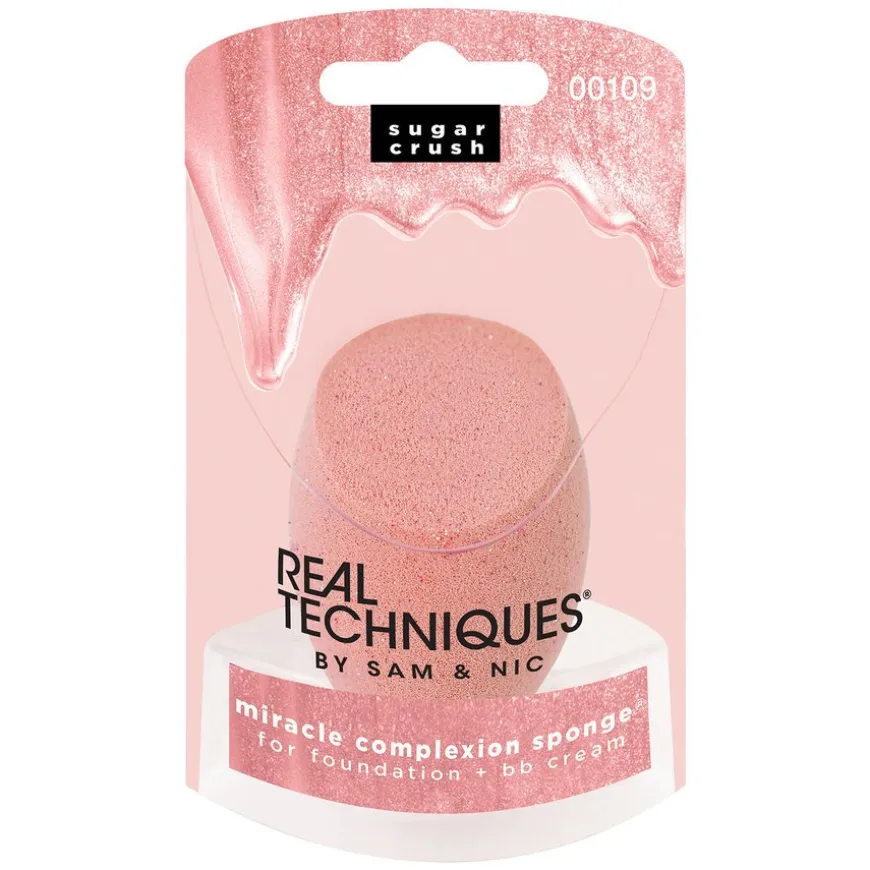 Miracle Complexion Sponge er en allsidig makeupsvamp av mykt, fleksibelt skum. Denne utgaven i trendy glitrende utførelse kommer i et begrenset eksklusivt opplag. Designet med en revolusjonerende skumteknikk som blander makeupen jevnt og du oppnår en sømløs og forbedret finish, hver gang. Avrundede kanter gjør det enkelt å blende de store områdene i ansiktet med en fjærende håndbevegelse. Presisjonsspissen dekker enkelt urenheter og ujevnheter. Den flate enden gir deg full kontroll til contouring rundt øyne og nesen. Bland flytende- og kremfoundation til en glødende, duggfrisk finish. Brukes tørr for full dekk eller fuktig for en duggfrisk glød.