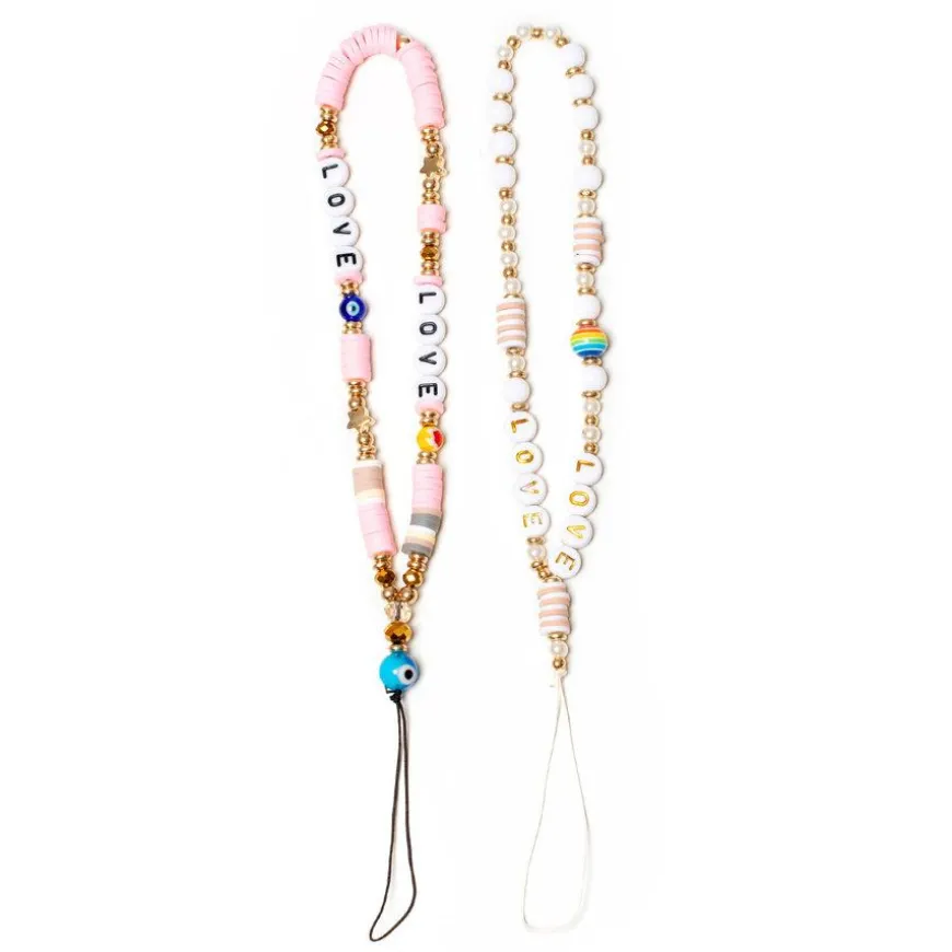 Sett med to søte og praktiske mobilsmykker. Mobilpynten er laget av glassperler, akryl, myke keramiske og kunstige perler. De er laget med en slitesterk tråd, som er sterk nok til å holde alt som telefon, kamera, nøkkelringer, ID-kort, U-disk, blitslys og annet lettvekts elektronikktilbehør. Reimen passer rundt håndleddet og kan enkelt festet på telefondekselet.