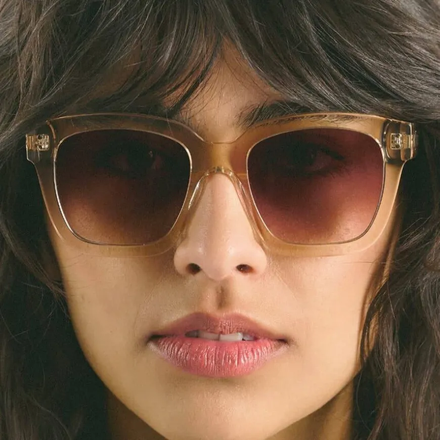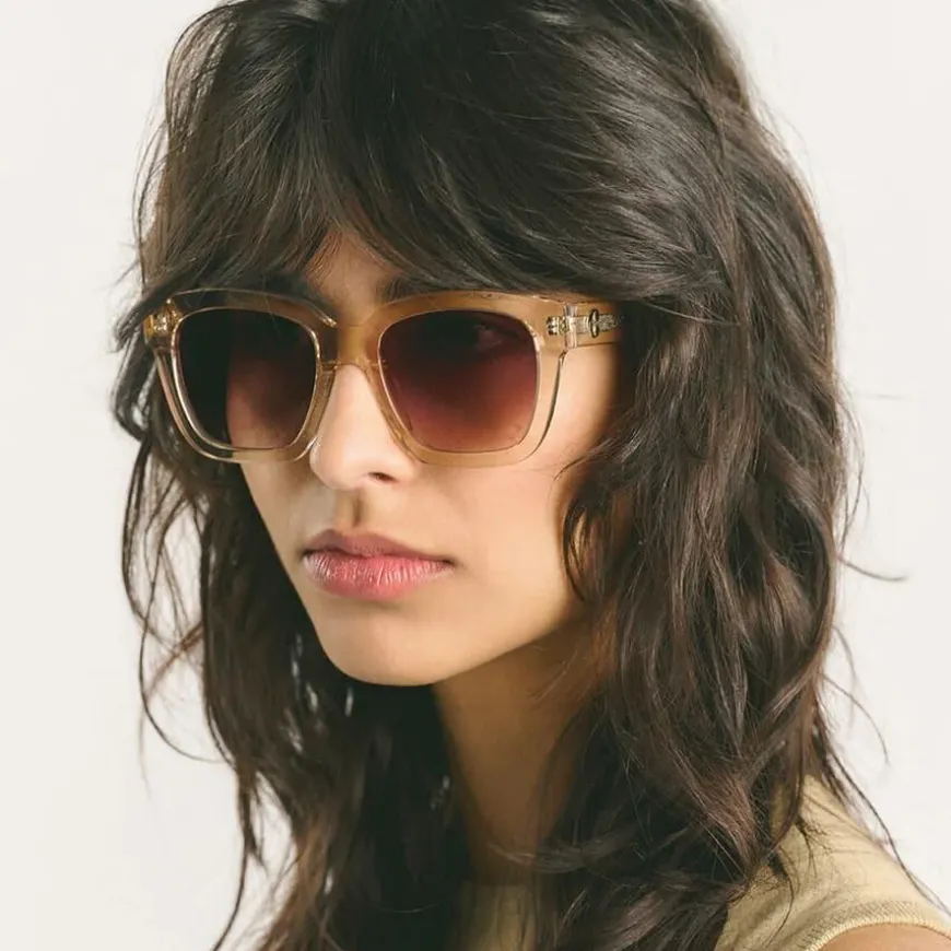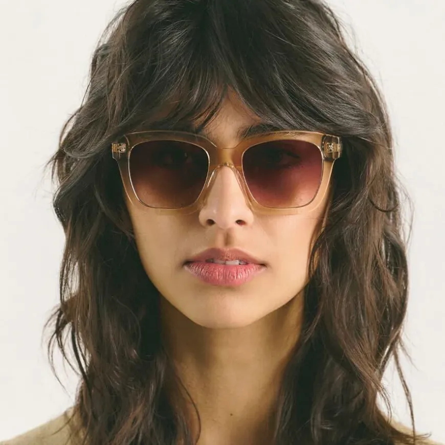Modena Champagne Gradual Brown kombinerer sitt oversized design med en champagnefarget innfatning og gradert brune glass. Dette klassiske fargevalget fremhever den tidløse, oversized silhuetten.