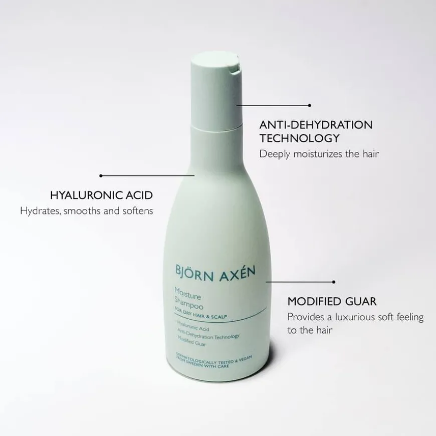 Björn Axén’s serie Moisture er designet for å møte behovene til tørt hår og hodebunn. Serien mykgjør, gir næring til håret og gjenoppretter den naturlige balansen av fuktighet i hår og hodebunn, noe som gjør håret luksuriøst mykt og friskt. Produktene inneholder hyaluronsyre, modifisert guar og Anti-Dehydration Technology. Alle produktene er dermatologisk testet og veganske.