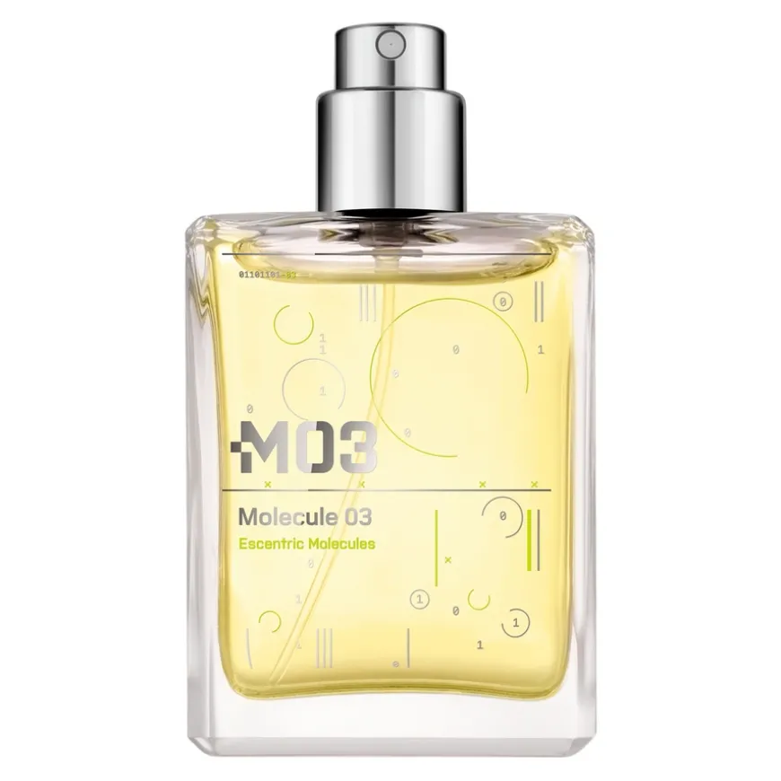 Molekyle 03-duften er radikalt minimalistisk. Den inneholder ingen duftstoffer annet enn aroma-molekylet Vetiveryl Acetate. Kunder som synes Molekyle-duftene er for subtile, kan vurdere å prøve Escentric-duftene, som alltid vil ha en kraftigere spredning.