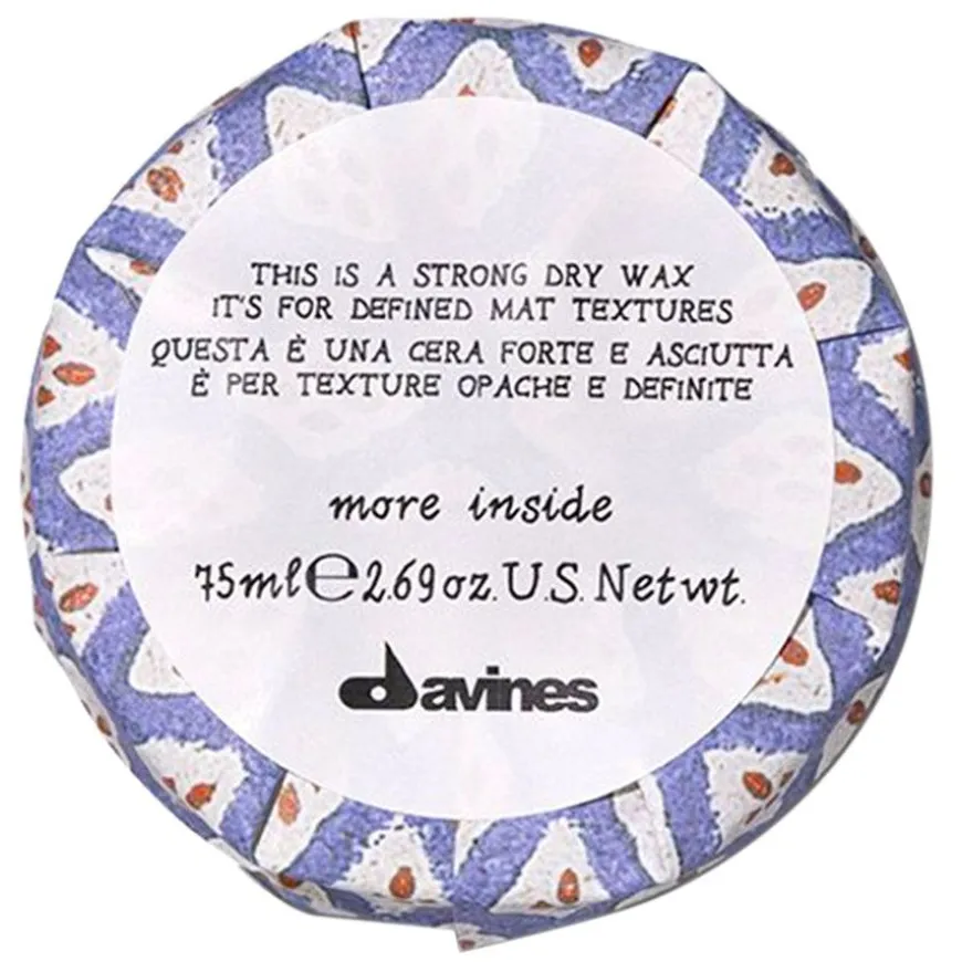More Inside This Is A Strong Dry Wax er en tørr, matt hårvoks med ekstra sterk hold. Voksen gir en definert tekstur til tørt hår, separerer håret bra og etterlater ikke rester. Uten tilsatte fargestoffer.