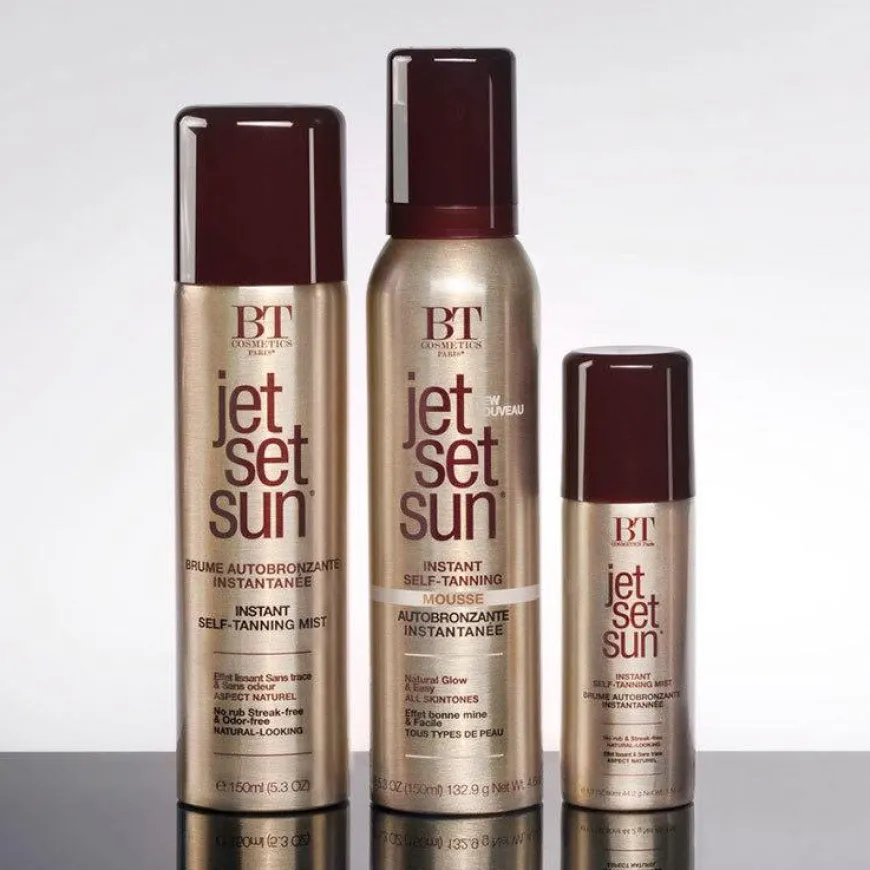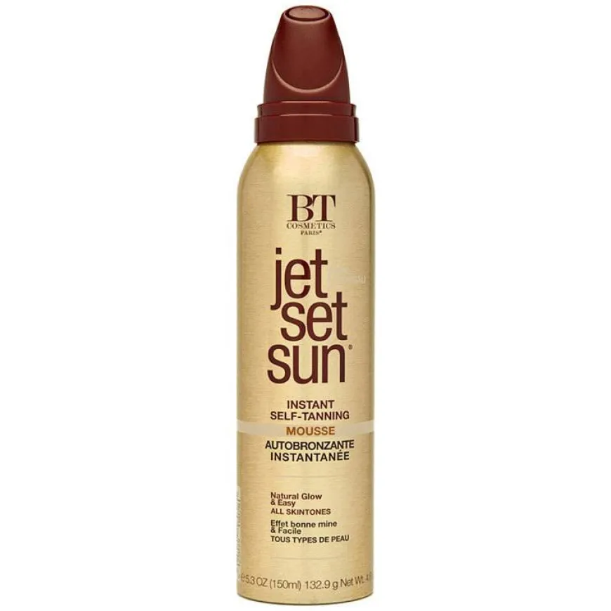 Jet Set Sun Mousse er etselvbruningsskum – spesielt formulert for å virke skånsomt på huden. Selvbruningsskummet har en hurtigtørkende formel som gir en gyllen og jevn brunfarge. Den inneholder naturlig DHA.Passer godt til å påføres medJet Set Sun sin egenApplicator Mitt. Få en rask og jevn brunfarge uten bryderier med Jet Set Sun Mousse. Resultatet varer mellom tre til syv dager.