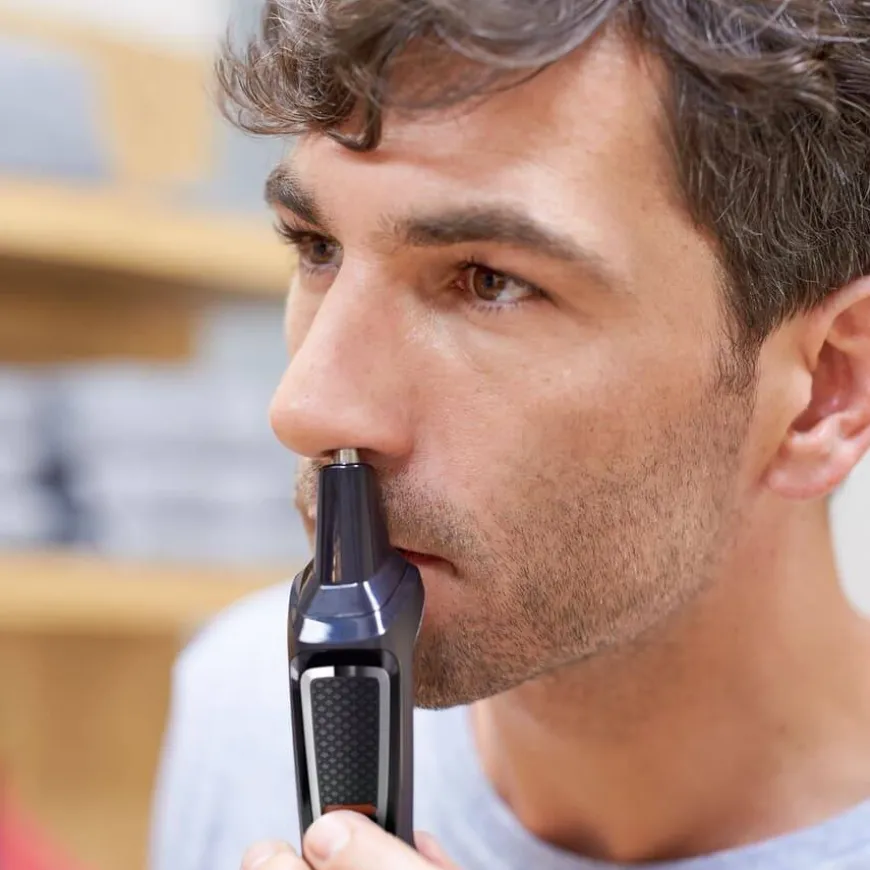 - Nese- og ørehårstrimmer fjerner uønsket hår skånsomt.