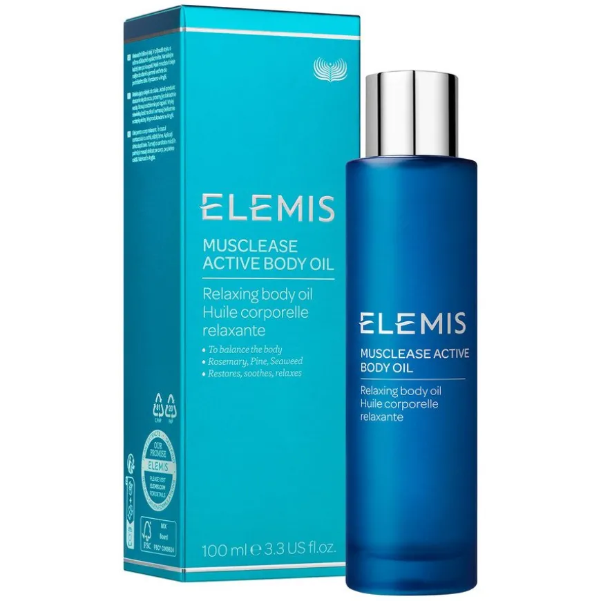 Elemis Musclease Active Body Oil er en algebasert aromaterapi olje som inneholder en kraftig blanding av styrkende Strandfuru, Havtorn, Havfennikel og rosmarin med en pleiende base. Oljen penetrerer raskt i huden og er et flott middel for å lindre muskelkramper og overanstrengte ledd. Gjør huden silkemyk og glatt. Denne kroppsoljen er en kombinasjon av havets rikdom og duftens kraft. Denne oljen er utmerket å bruke som en del av et fitness program. Super for å lindre spenninger i muskler og ledd.