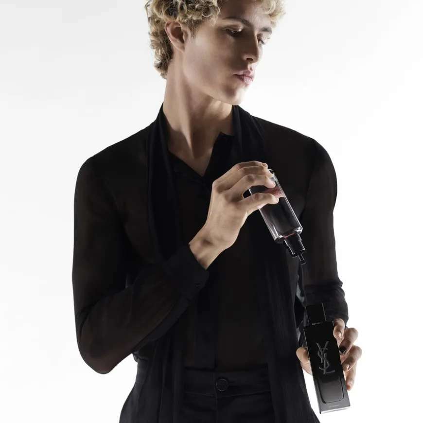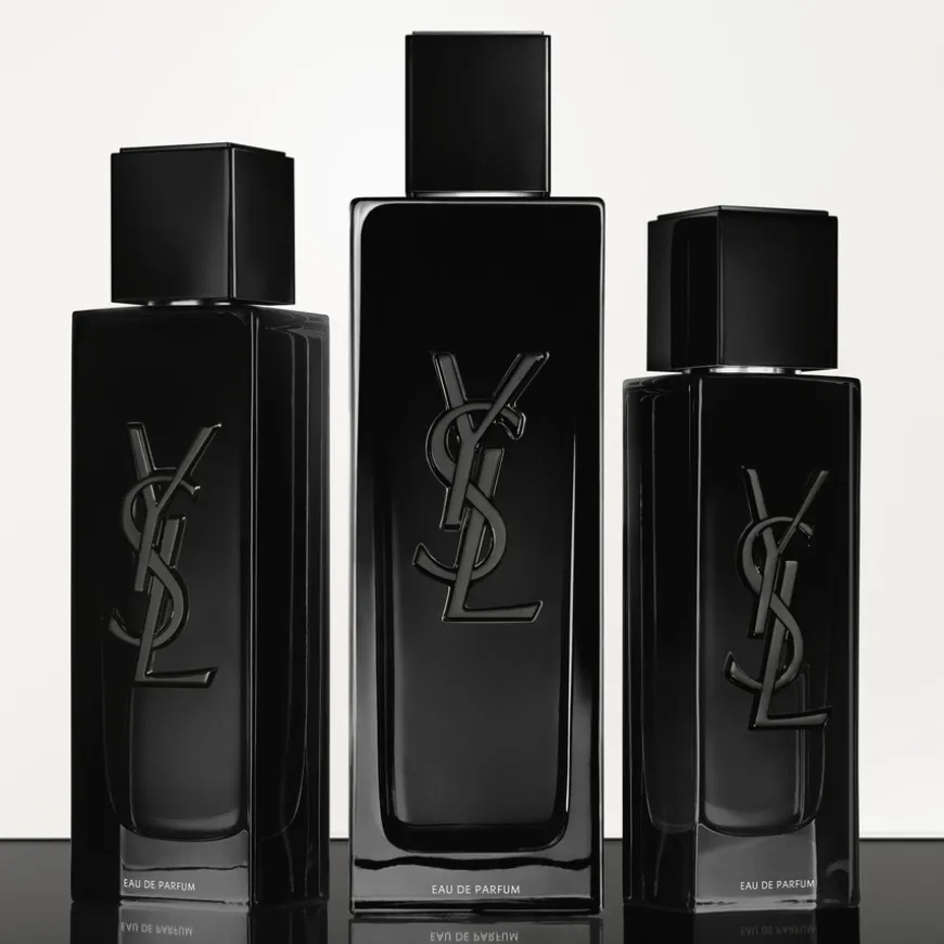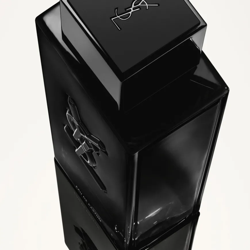 Silhuetten av YSL i en flaske. Skinnende. Flytende. En svartlakkert monolitt i nyanser hvor du kan se deg selv. I hjertet, innkapslet i glasset, er den ikoniske YSL Cassandre-logoen. Min duft, MYSLF.
