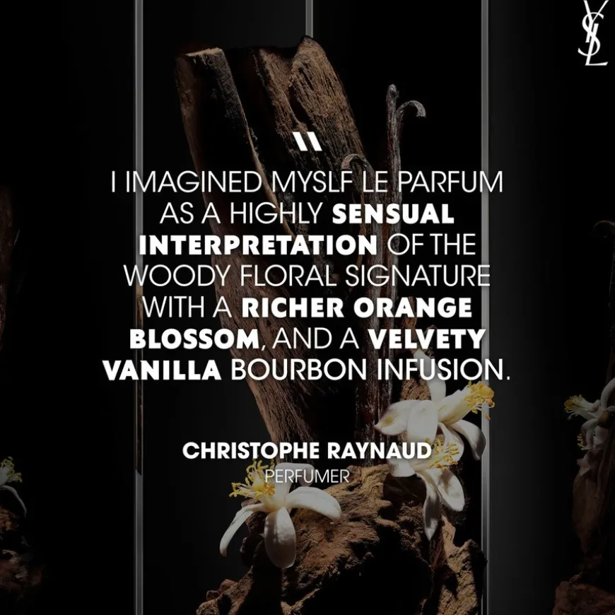 Yves Saint Laurent MYSLF Le Parfum er en svært sensuell og intenst rik parfyme. Den nye intensiteten født av kontrastene som finnes i alle moderne menn, selve essensen av en mann født til å være ingenting annet enn seg selv. Radikalt dristig. Essensielt kontrastfylt. Uforskammet nyansert. Et nytt intenst blomsteruttrykk med et hint av tre, født fra det uventede møtet mellom myk blomsterduft og fløyelsmykt tre, og forsterket av fløyelsmyk vanilje, for et nytt sensuelt ravduftende duftspor.