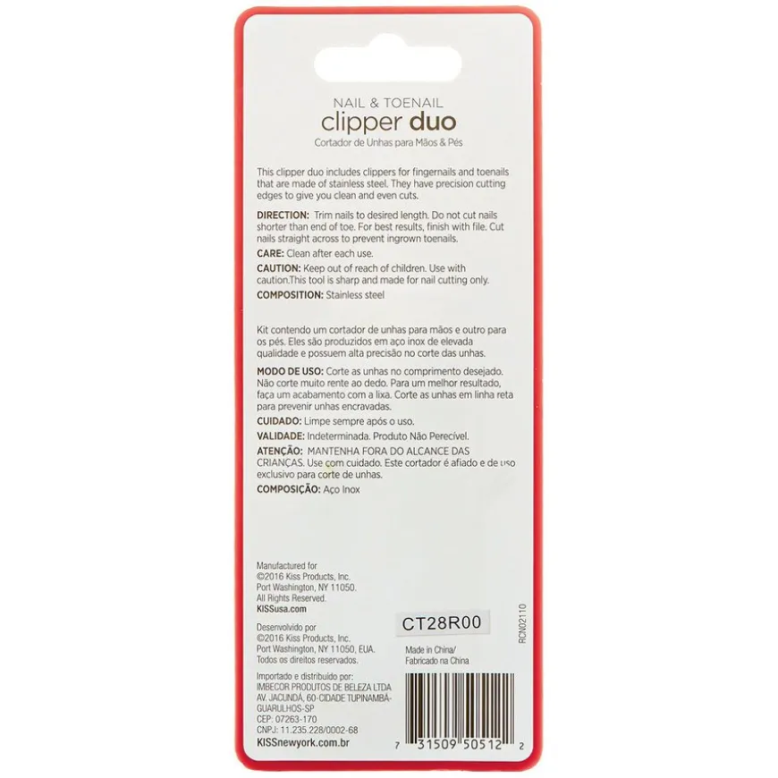 Nail and Toenail Clipper Duo er en klippeduo for fingernegler og tånegler. Pakken inneholder negleklipper for både fingre og tær. Negleklipperne er laget av rustfritt stål og har presisjonskanter for å gi rene, jevne kutt.