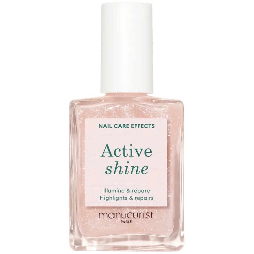 Active Glow Shine gir et glitrende løft til neglene, selv når de er skadede eller skjøre. Den skimrende formelen inneholder rødbeteekstrakt og Hexanal, som sammen beroliger og styrker neglene samtidig som du får en skimrende, sølvaktig effekt. Perfekt for fest, helg eller når du bare trenger litt ekstra glam i hverdagen – bygg opp effekten med flere strøk for maksimal glitter.