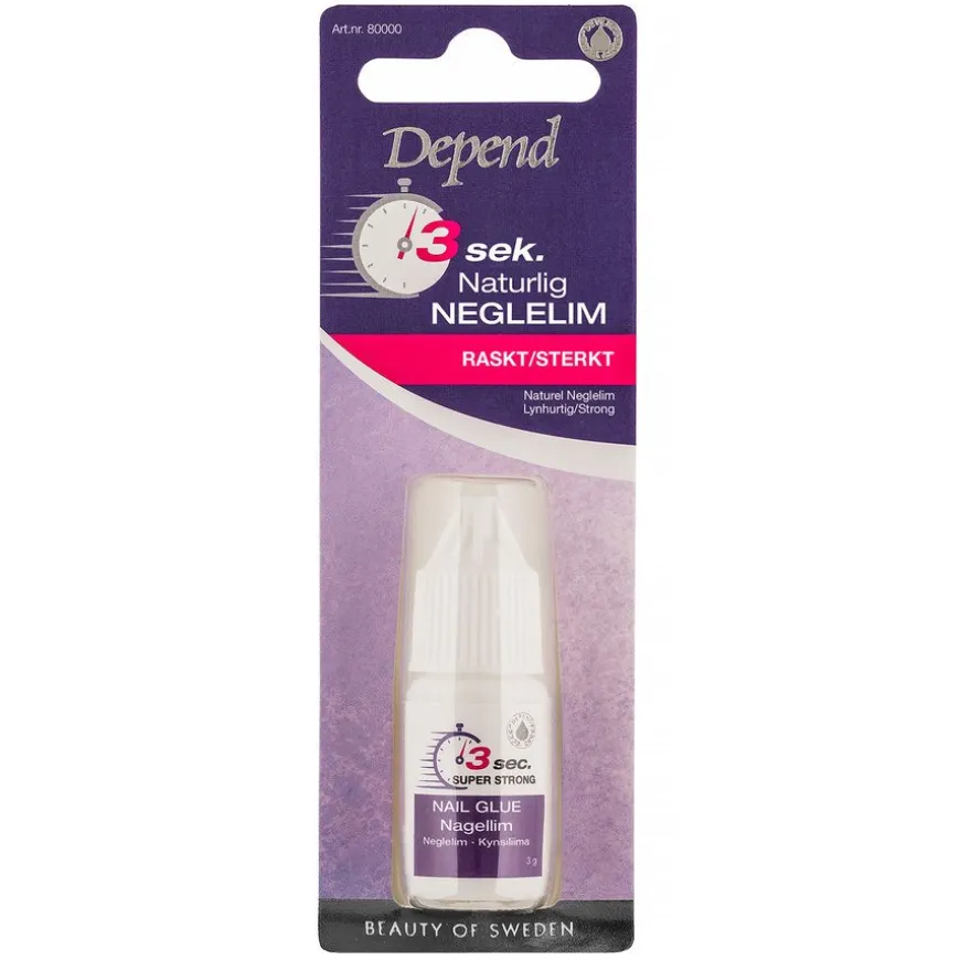 Nail Clue 3 Sec. Naturel Strong er et naturlig neglelim til påføring av løsnegler og negletipper. Fester på bare tre sekunder. Ved fjerning bruk løsneglfjerner fra Depend.