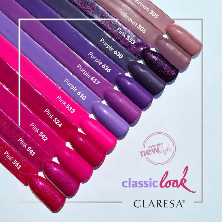 Hybrid neglelakk (soak-off) fra Claresa med varighet på opptil 4 uker. Produktet brukes sammen med Claresa basecoat og topcoat og må herdes i UV/LED-lampe.