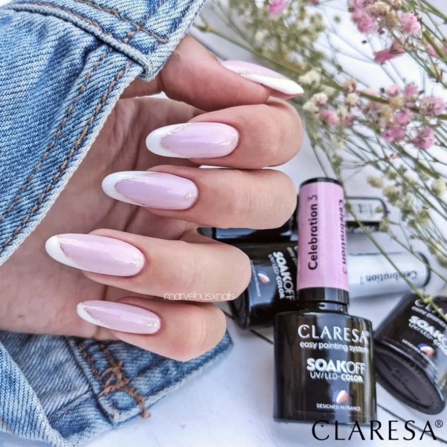 Hybrid neglelakk (soak-off) fra Claresa med varighet på opptil 4 uker. Produktet brukes sammen med Claresa basecoat og topcoat og må herdes i UV/LED-lampe.