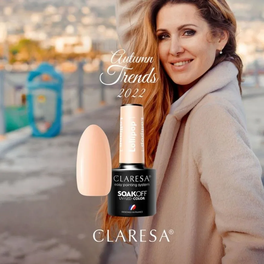 Hybrid neglelakk (soak-off) fra Claresa med varighet på opptil 4 uker. Produktet brukes sammen med Claresa basecoat og topcoat og må herdes i UV/LED-lampe.