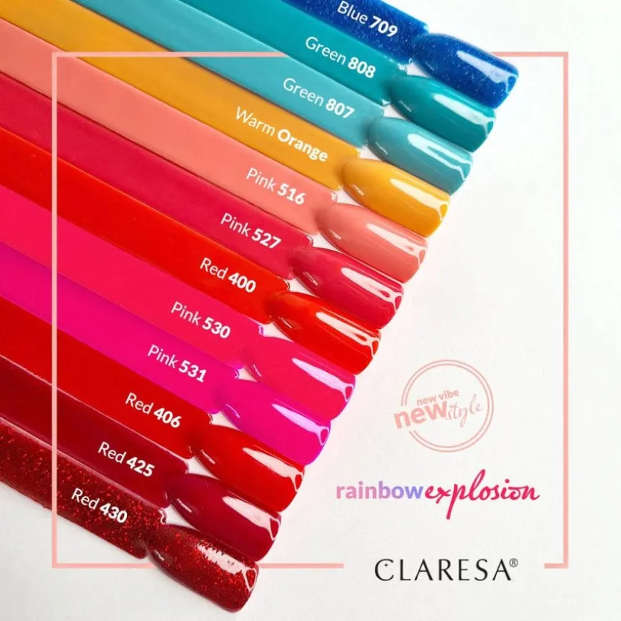 Hybrid neglelakk (soak-off) fra Claresa med varighet på opptil 4 uker. Produktet brukes sammen med Claresa basecoat og topcoat og må herdes i UV/LED-lampe.