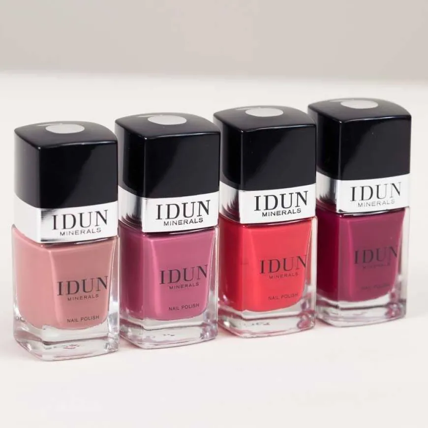 Butyl Acetate, Ethyl Acetate, Nitrocellulose, Adipic Acid/Neopentyl Glycol/Trimellitic Anhydride Copolymer, Dipropylene Glycol Dibenzoate, Isopropyl Alcohol, Mica, Stearalkonium Bentonite, Synthetic Fluorphlogopite, Barium Sulfate, Acrylates Copolymer, Silica, Methicone, Talc, Aluminum Hydroxide, Triethoxycaprylylsilane, Tin Oxide, Panthenol, Ascorbic Acid, Tocopheryl Acetate, Biotin, Prunus Amygdalus (Sweet Almond) Dulcis Oil, Sodium Chloride, Sodium Ferrocyanide, May Contain (+/-): CI 15850 (Red 6), CI 15850 (Red 6 Lake), CI 15850 (Red 7 Lake), CI 15880 (Red 34 Lake), CI 19140 (Yellow 5 Lake), CI 42090 (Blue 1 Lake), CI 60725 (Violet 2), CI 77000 (Aluminum Powder), CI 77163 (Bismuth Oxychloride), CI 77491 (Iron Oxides), CI 77499 (Iron Oxides), CI 77510 (Ferric Ammonium Ferrocyanide), CI 77742 (Manganese Violet), CI 77891 (Titanium Dioxide)Please be aware that ingredient lists may change or vary from time to time. To confirm that an IDUN Minerals product is suitable for you, please check the ingredients list on the product packaging.