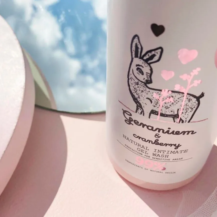 Geranium And Cranberry Natural Intimate Wash er en naturlig og beroligende intimvask med gelkonsistens, utviklet for skånsom, daglig pleie av intimområdet. Den inneholder 99 % naturlige ingredienser og er formulert med pH-verdi på 4, som støtter hudens mikrobiom og beskytter mot irritasjon og ubehag. Formelen er basert på antiinflammatorisk geraniumblomstervann i stedet for vanlig vann, og er beriket med milde plantebaserte vaskestoffer og pleiende planteekstrakter. Perfekt for kvinner med sensitiv hud, og ved behov for ekstra komfort og beskyttelse.