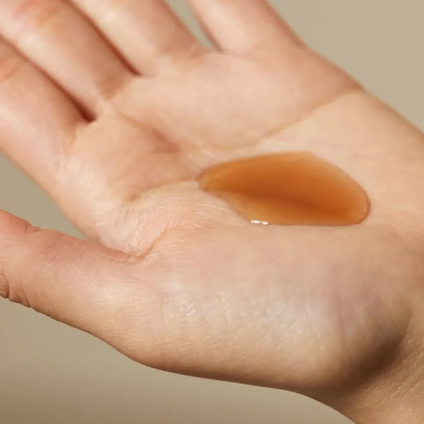 - Serumet har en «duggvåt» tekstur som føles glatt på huden uten å føles klissete.