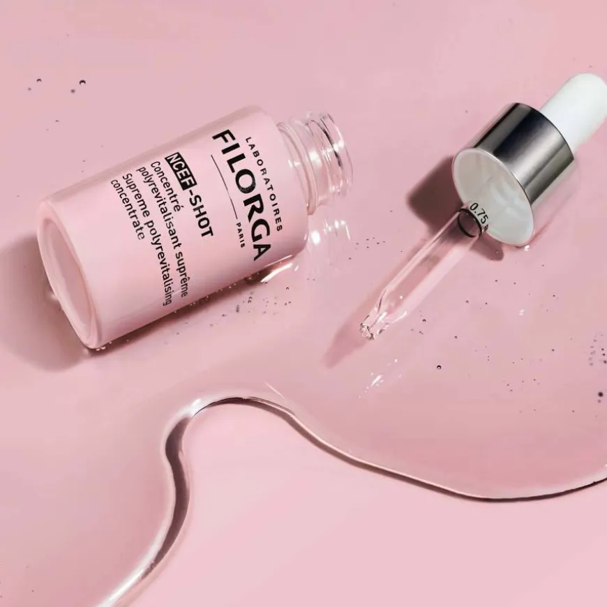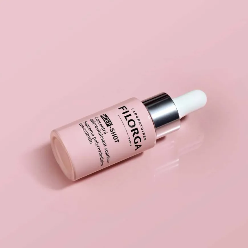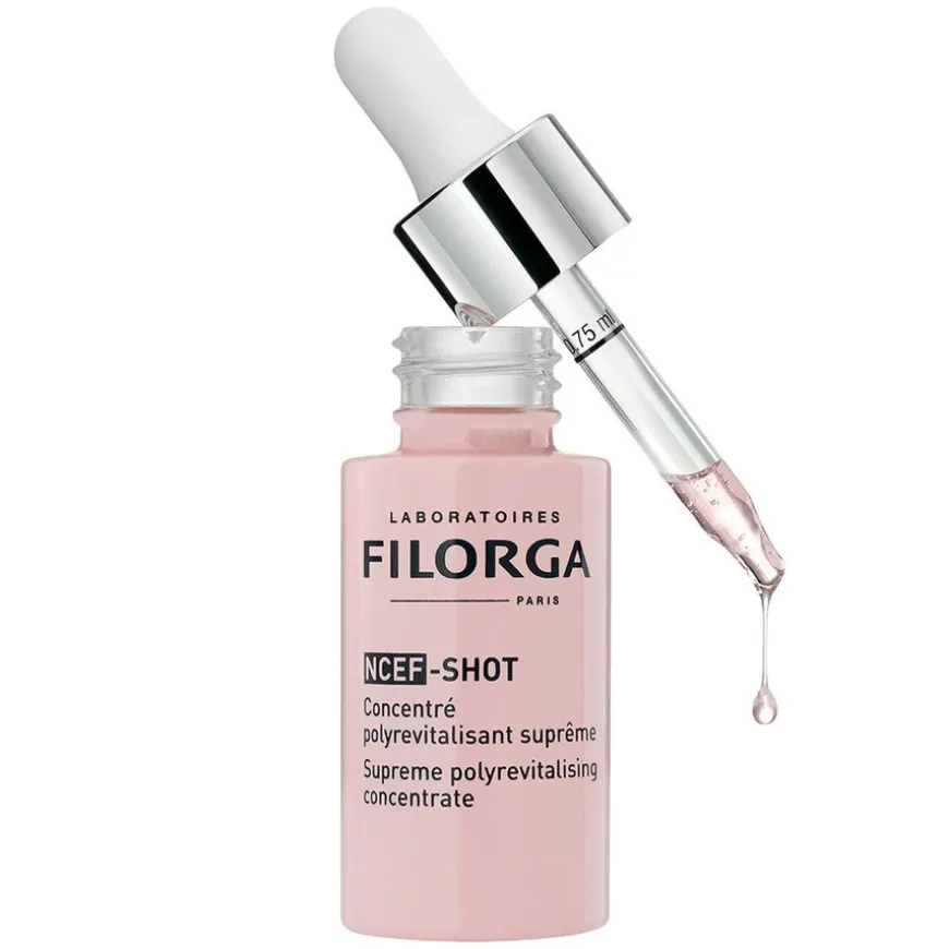 NCEF-Shot er et ultra-konsentrert serum, med en konsentrasjon av de 50 polyrevitaliserende ingrediensene tilsvarene en meso-injeksjon per påføring. Dette er en 10-dagers intensiv kur for å gi en kraftig hudfornyende effekt på all hudkvalitet, rynker, spenst og glød, porer, hudtone og hudstruktur. Kan brukes i kombinasjon med alle linjer i Filorga, morgen og kveld, som første trinn etter rens. Den ultralette teksturen til denne anti-aldringsbehandlingen absorberes umiddelbart inn i huden og er et enkelt tillegg til hudpleierutiner.