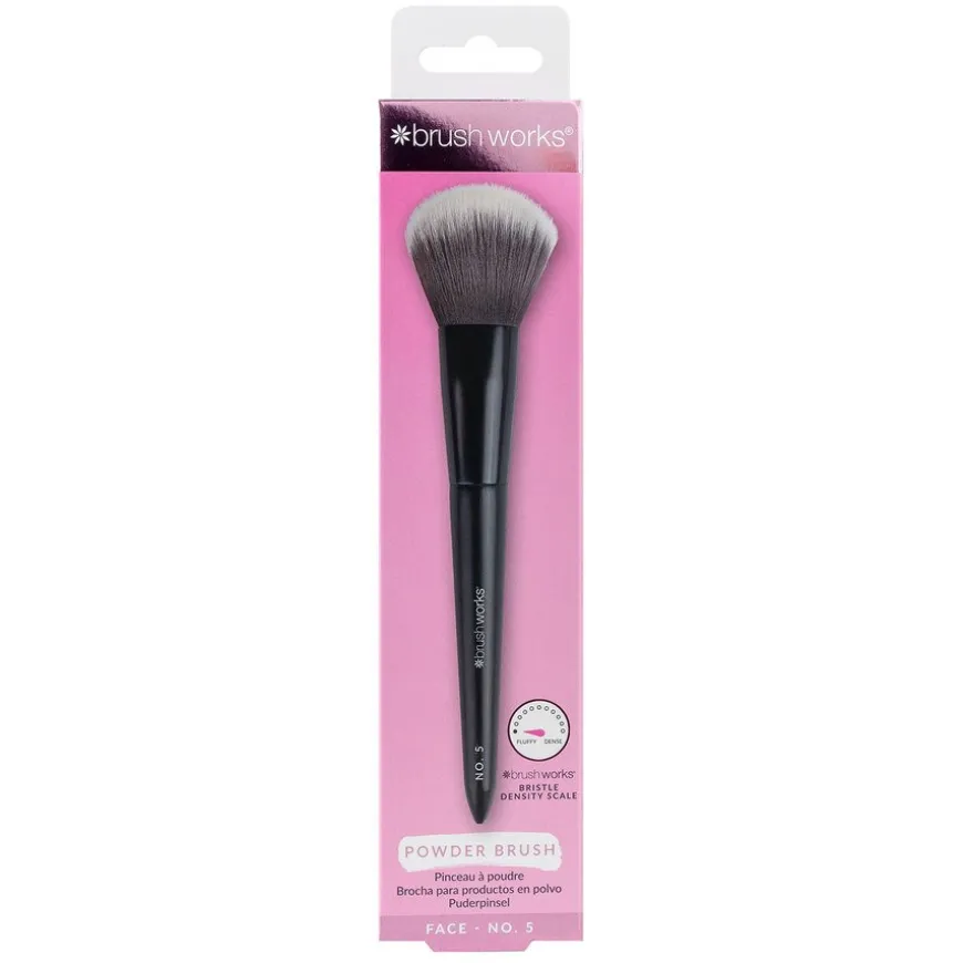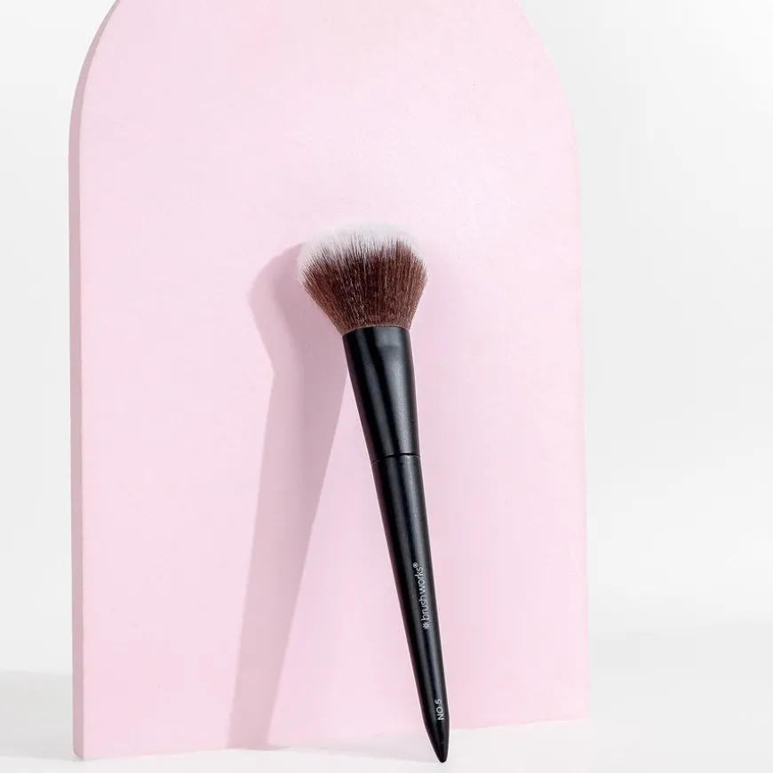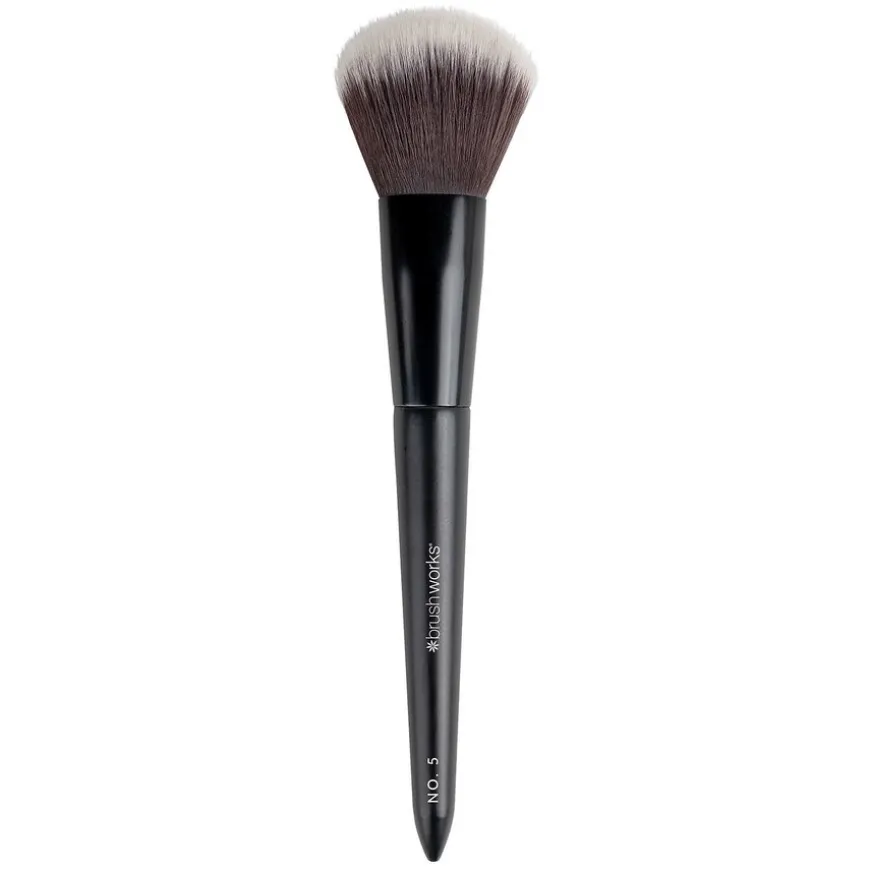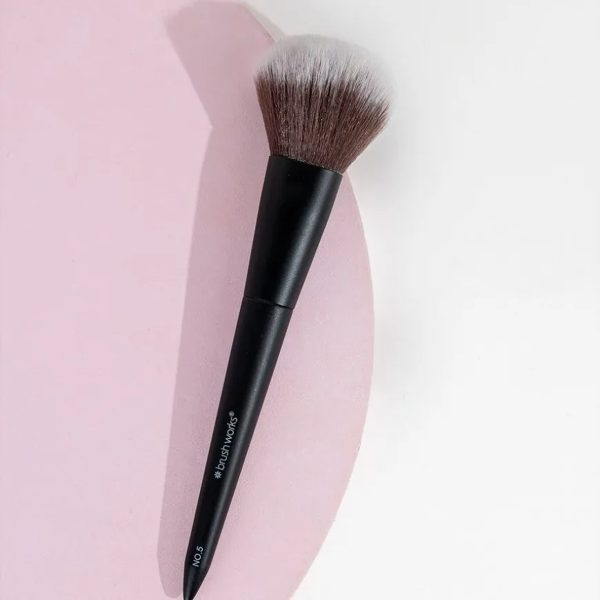 Brushworks No. 5 Powder Brush er ditt essensielle verktøy for å oppnå en feilfritt satt base med letthet. Denne børsten distribuerer og blender pudderprodukter sømløst, og sikrer en jevn og airbrushet finish hver gang. Med supermyke taklon syntetiske børstehår, sørger denne børsten for at produktene dine glir på jevnt og mykt, samtidig som den er ekstremt skånsom mot huden.