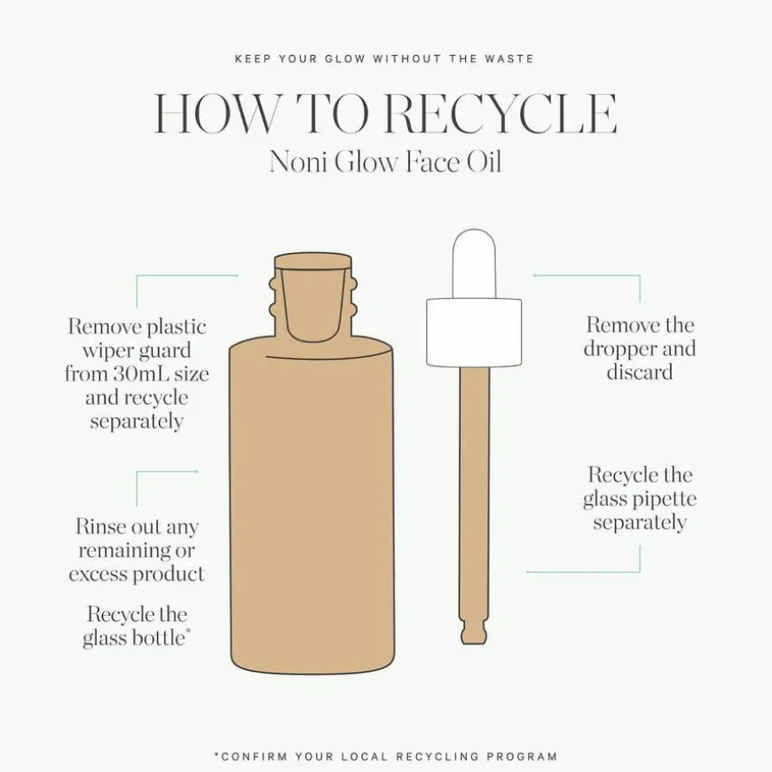 Noni Glow Face Oil er en effektiv, næringsgivende og lett olje designet for ansikt og hals. Den mykgjørende oljen inneholder organisk noniekstrakt, nypeolje, granatepleolje og tindvedolje som sammen skaper en rik kilde til antioksidanter og essensielle fettsyrer. Formelen er utformet for rask absorbering, og den mykgjør og gir huden en naturlig glød. Etter bruk føles huden mykere, smidigere og friskere. Noni Glow Face Oil reduserer solskader og arrdannelse, og gir huden en jevnere tone.