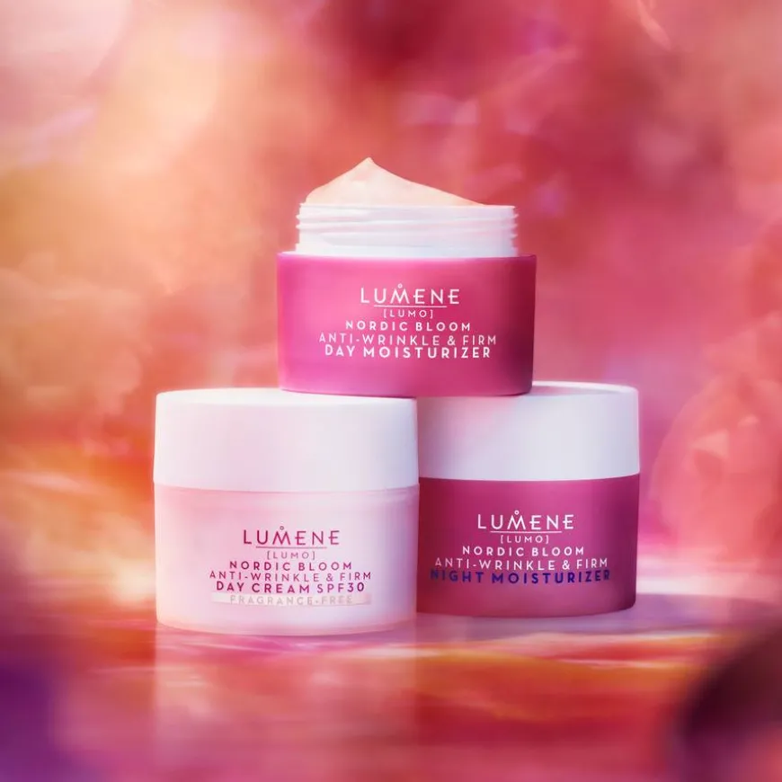 Lumene Nordic Bloom Anti-Wrinkle & Firm Day Moisturizer SPF 30 er en nærende dagkrem som kontinuerlig tilfører fuktighet og gir en fyldig og smidig følelse. Kremen reduserer synligheten av fine linjer og får huden til å se jevnere, fyldigere og naturlig ungdommelig ut. Nordic Bloom Anti-Wrinkle & Firm Day Moisturizer inneholder pre-retinol fra nordiske bær og nordiske tyttebærekstrakt. Beskyttelse mot UVB/UVA-stråler, SPF 30. Produktet er vegansk.