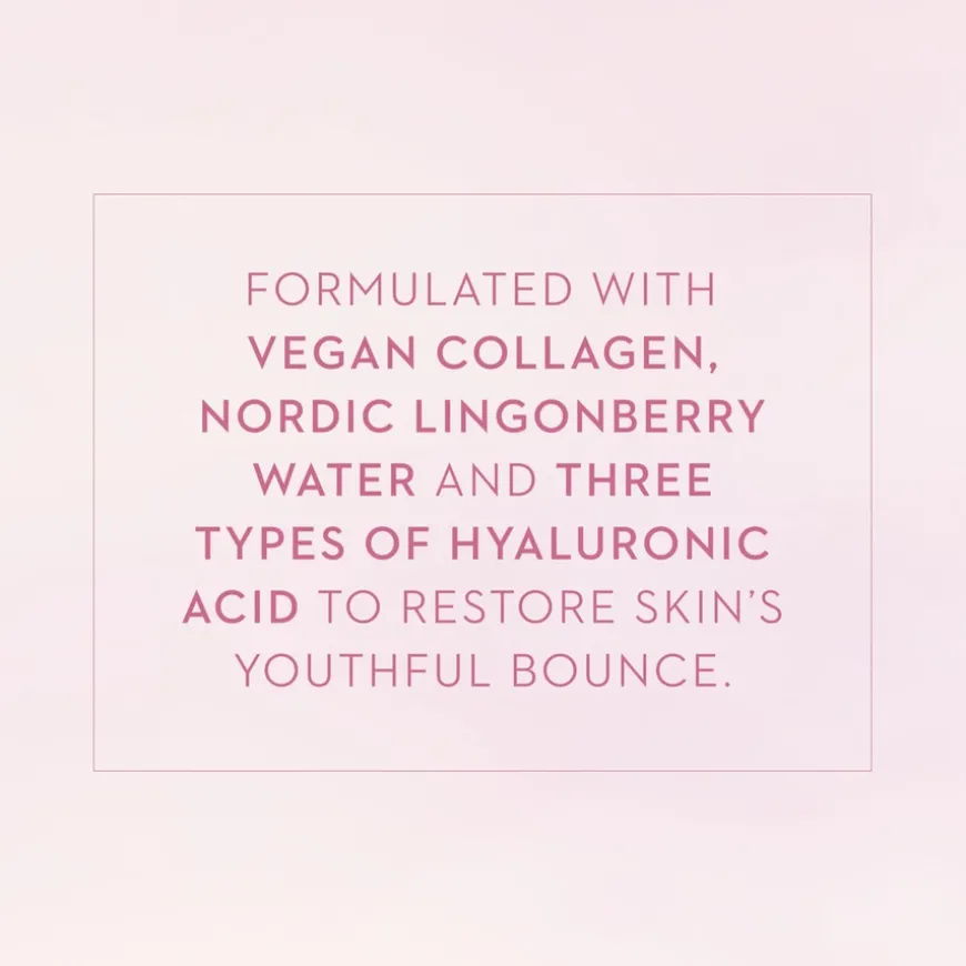 Gjenopprett hudens ungdommelige sprett med dette superkonsentrerte glattende serumet. Lumene Nordic Bloom Vegan Collagen Essence retter seg mot tegn på kollagentap og reduserer synlig forekomsten av rynker og forbedrer utseendet til hudens elastisitet for en fastere, ungdommelig hudfarge. Formulert med vegansk kollagen, nordisk tyttebærvann og tre typer hyaluronsyre, dette innovative gelégel-serumet hydrerer intenst for jevnere og fyldigere hud. Produktet er parfymefritt og vegansk, og inneholder resirkulert tyttebærvann avledet fra viltlagde bær. Emballasjen er laget av resirkulerbare og resirkulerte materialer.