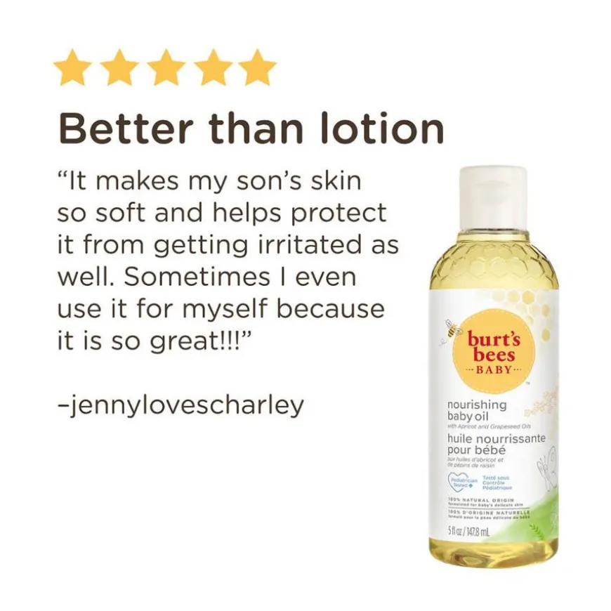 Oljen innholder Aprikos- og druekjerneolje som tilfører huden næring og hindrer uttørring. Oljen er rik på antioksidanter, vitamin A og E, og har en frisk, naturlig duft – her finnes ingen syntetisk duft. Huden vil føles sunn, myk og rehydrert. Ingen honning. Testet av barneleger.
